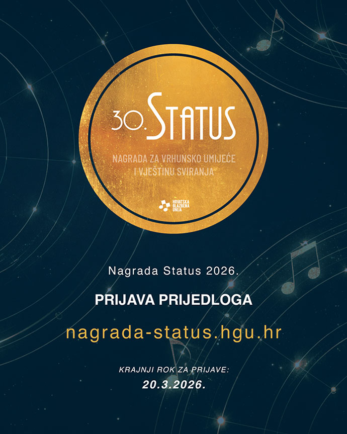 Hrvatska glazbena unija s ponosom najavljuje 30., jubilarnu dodjelu glazbene nagrade Status – najvažnijeg strukovnog priznanja za instrumentaliste u Republici Hrvatskoj.